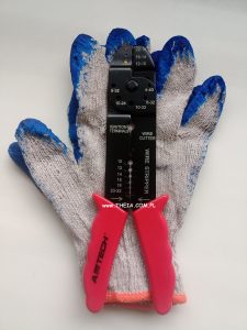 Aby wyczyścić drut, należy włożyć koniec kabla do specjalnego otworu, przytrzymać uchwyty ściągacza, aby przeciąć uzwojenie i wyciągnąć przewodnik, uwalniając go w ten sposób od izolacji.